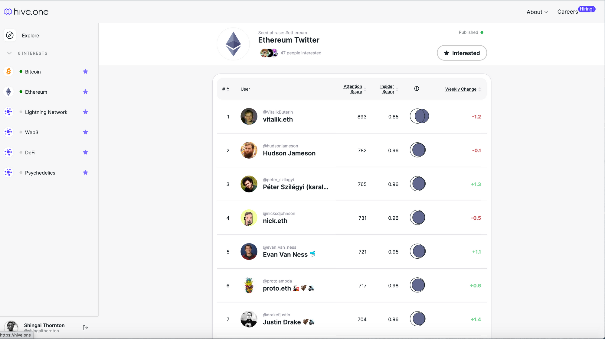 Let’s examine the Ethereum community to see how Hive.one’s algorithm performs at measuring influence and identifying community insiders.