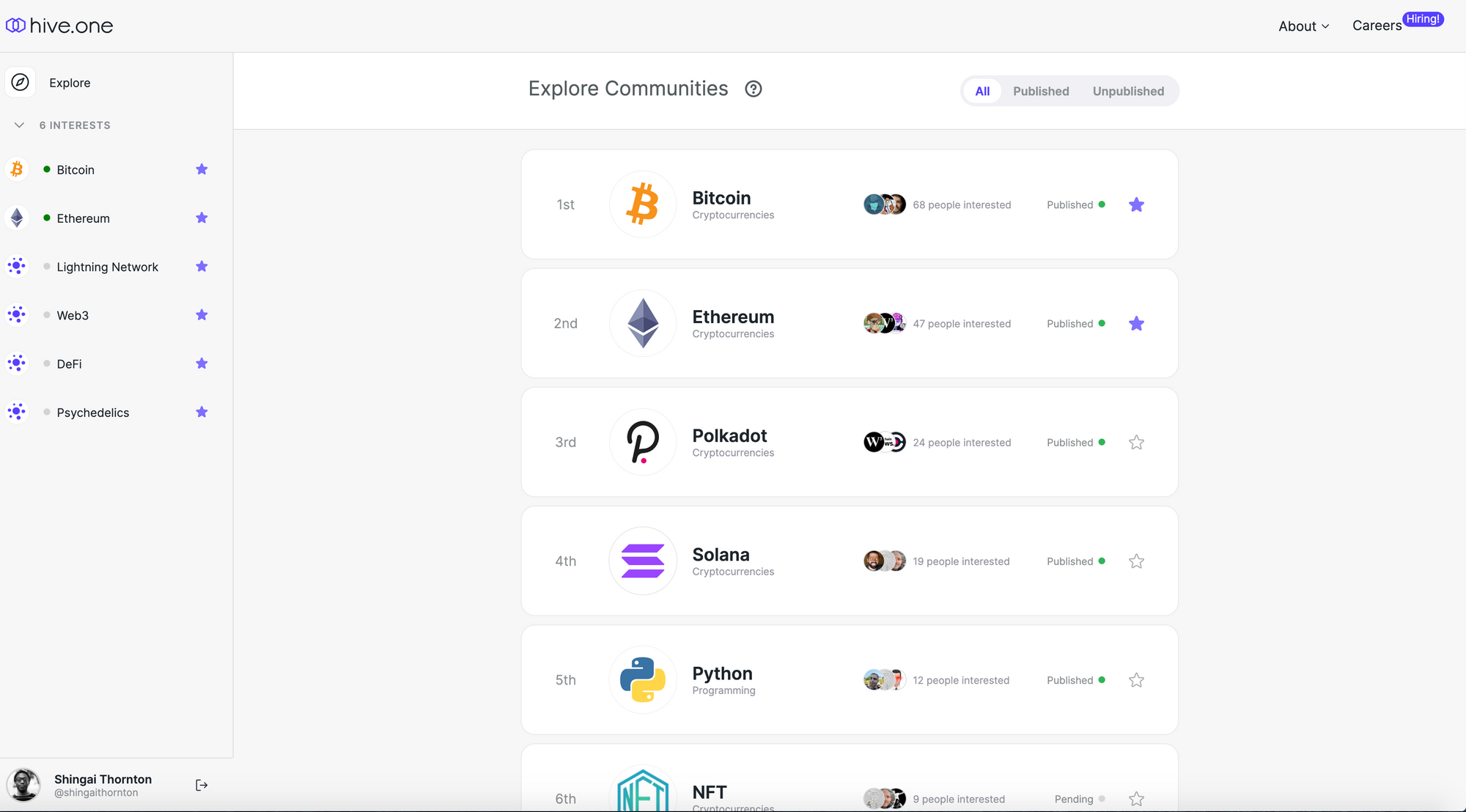 Hive.one users can customize their experience by saving communities to their group of “interests.” Selected interests are made public which enables other users to curate based on the interests of others, and allows developers to build on the open graph.
