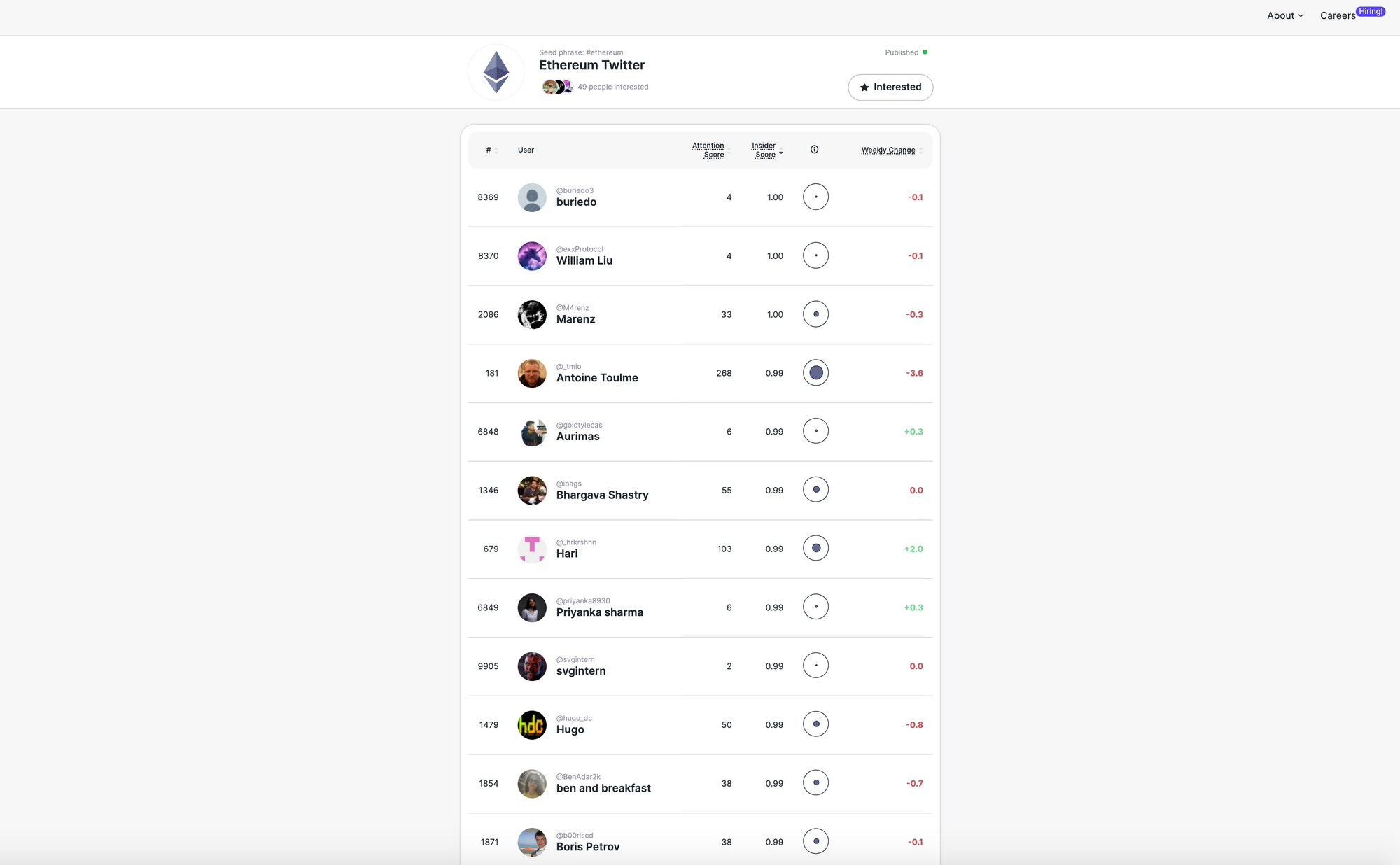 Ethereum Twitter Ranked by Attention Score