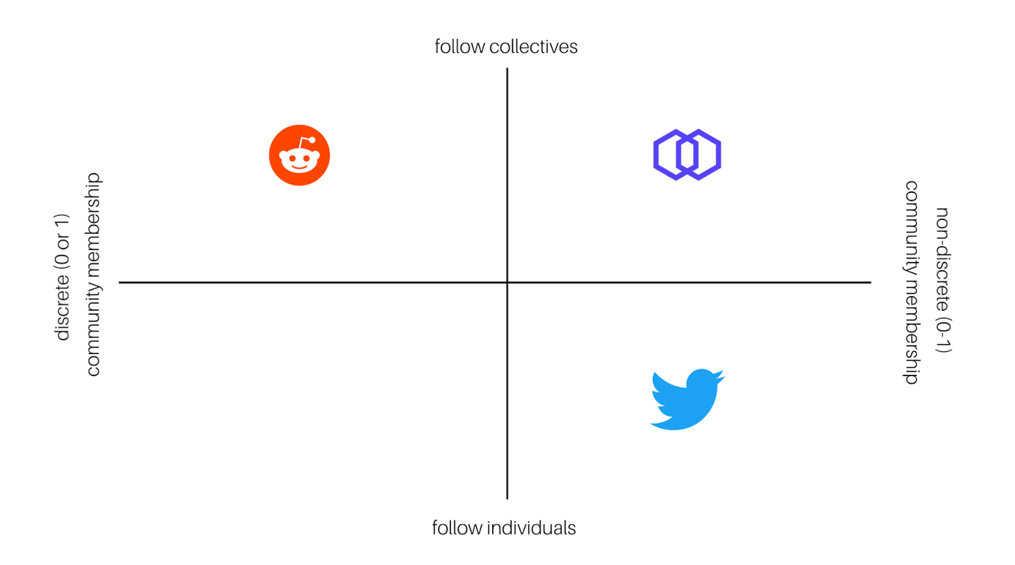 Hive.one serves as a bridge between Reddit’s model where you follow communities that form around shared interests, and Twitter’s model where you follow a diverse set of individuals with varying interests.