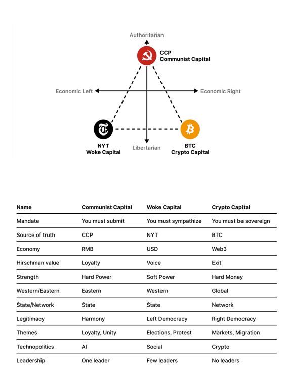 Section two describes how the world is heading towards a tripolar moment. It’s the American establishment vs. the CCP vs. The Global Internet.